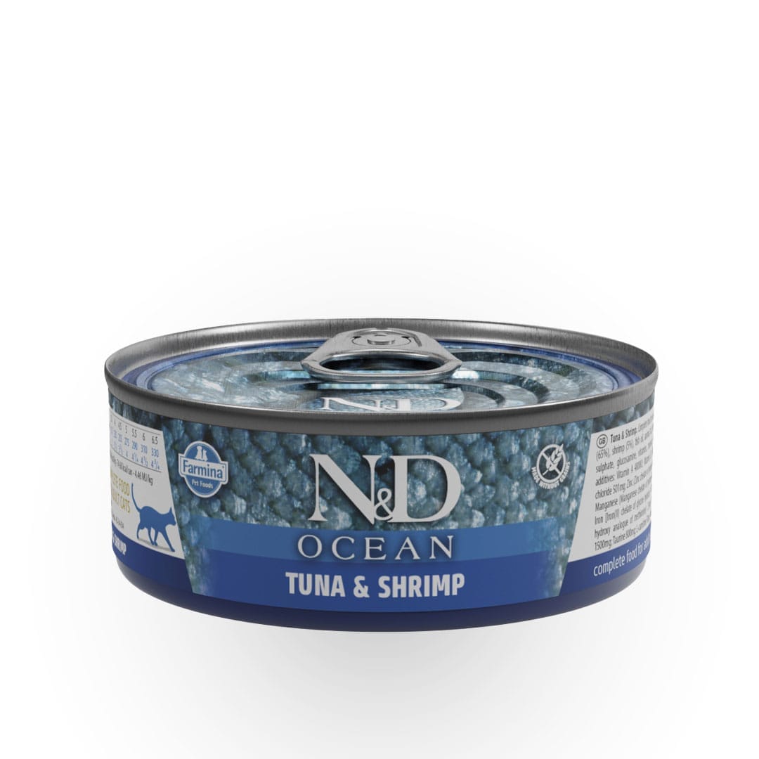 Farmina N&D Ocean es una línea de comida húmeda para gatos que se distingue por su enfoque en ofrecer una nutrición completa y balanceada, utilizando ingredientes frescos y de origen marino. Esta variante de Atún y Gambas está diseñada para satisfacer el paladar más exigente de tu gato, al mismo tiempo que le proporciona los nutrientes esenciales para un óptimo desarrollo y mantenimiento.