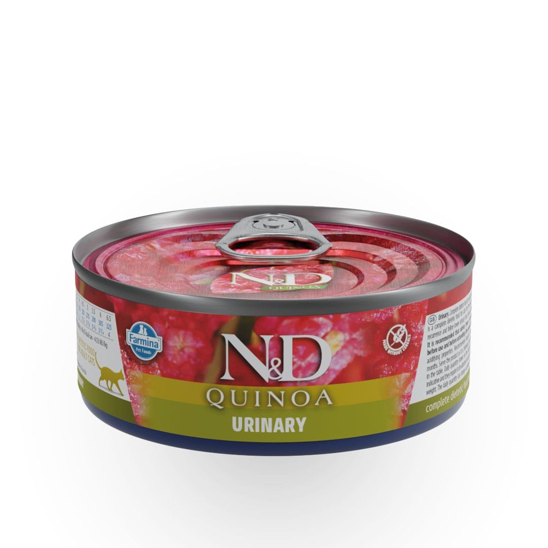 Farmina N&D Quinoa Urinary con Pato y Arándano es una solución alimentaria especializada para gatos, diseñada específicamente para promover la salud del sistema urinario. La fórmula incluye ingredientes seleccionados con precisión, como el pato y los arándanos, que no solo ofrecen un sabor exquisito, sino que también aportan propiedades beneficiosas para el bienestar urinario de tu felino. Con el respaldo de la línea N&D (Natural & Delicious) y la inclusión de quinoa, un superalimento reconocido por su aporte nutritivo, este alimento garantiza un perfil nutricional óptimo y equilibrado, adaptado a las necesidades específicas de gatos adultos.