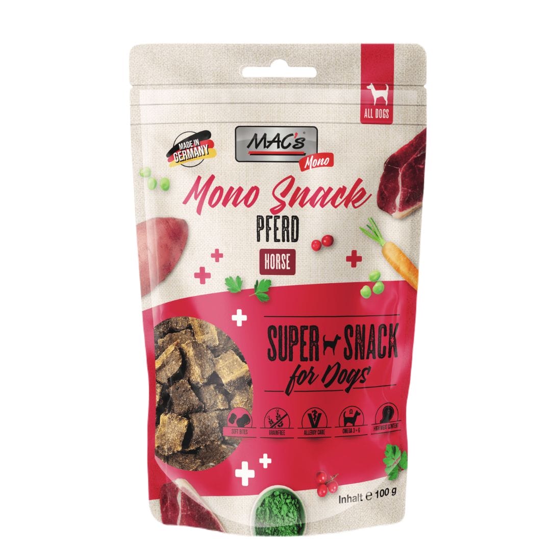 MAC’s Perro Mono Snack Caballo es una solución cuidadosamente diseñada para perros con sensibilidades alimentarias. Su composición se centra en la carne de caballo, una fuente de proteína de alta calidad que es menos común en las dietas tradicionales para perros. Esta fórmula busca abordar las necesidades nutricionales de perros con sensibilidades alimentarias o alergias, proporcionando una alternativa bien equilibrada.