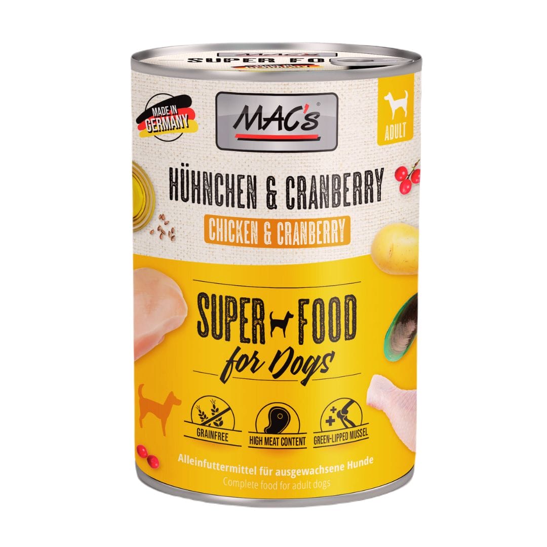 MAC’s Perro Pollo y Arándanos Rojos es un alimento húmedo de alta calidad diseñado especialmente para satisfacer las necesidades nutricionales de tu perro. Esta deliciosa receta combina tierna carne de pollo con jugosos arándanos, creando una mezcla irresistible que seguramente complacerá el paladar de tu compañero canino. El alimento está elaborado con ingredientes naturales seleccionados cuidadosamente para brindar una dieta equilibrada y sabrosa. Libre de granos y aditivos artificiales, MAC’s Perro Pollo y Arándanos es una elección saludable que apoya la vitalidad, la digestión y el bienestar general de tu compañero canino.