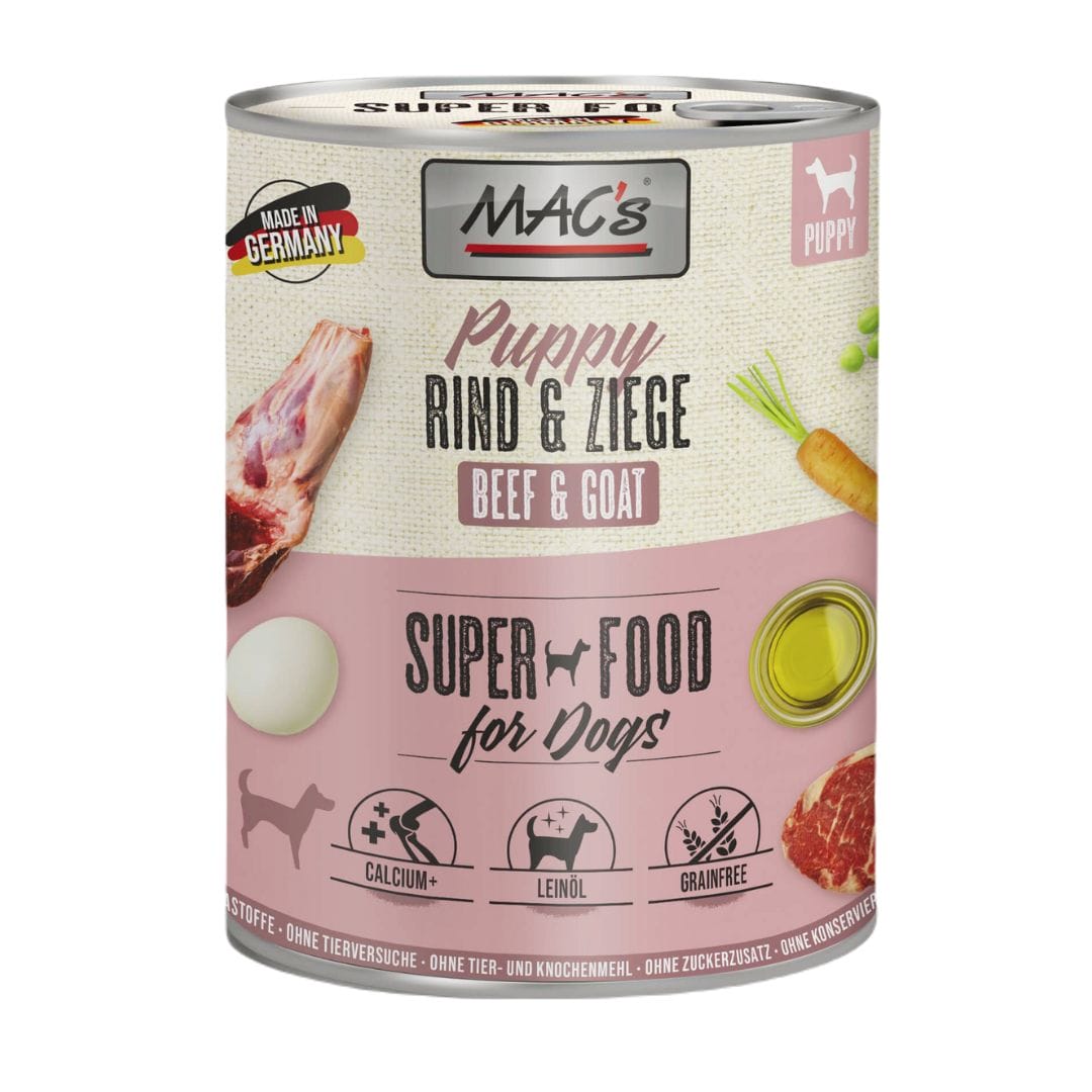 «MAC’s Perro Puppy Vacuno y Cabra» es el comienzo ideal para la dieta de tu cachorro, brindando una combinación rica en nutrientes con un 73.7% de carne y subproductos de vacuno y un 17% de cabra, que aseguran un alto valor proteico para un desarrollo muscular óptimo. Los vegetales como zanahorias y guisantes añaden las vitaminas y minerales necesarios para un crecimiento saludable, mientras que el aceite de linaza prensado en frío y el polvo de cáscara de huevo enriquecen la dieta con ácidos grasos esenciales y calcio. Este alimento completo y cuidadosamente balanceado apoya el desarrollo integral de tu cachorro, asegurando una base sólida para una vida larga y saludable.